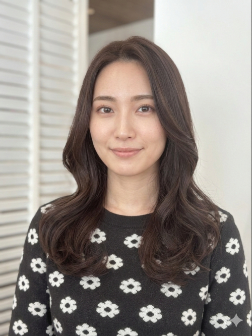 ラベンダーブラウン×上品くびれセミミディアム